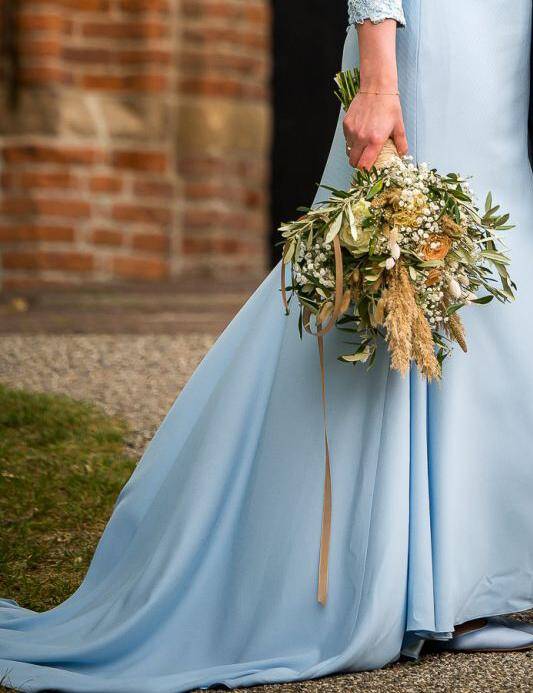 Jesse en Martine. Bruidsboeket: zomers en droogbloemen. (foto's gemaakt door Marinde fotografie).