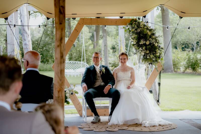 Jurriën en Rianne trouwden op de warmste dag van 2023. Veel bloemen - mooie tinten - veel rozen.
